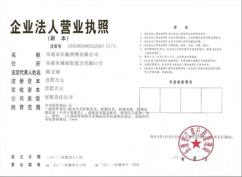 | 发证机构: | 乐清市公司行政管理局 | 发证时间 : | 2012-04-13 |